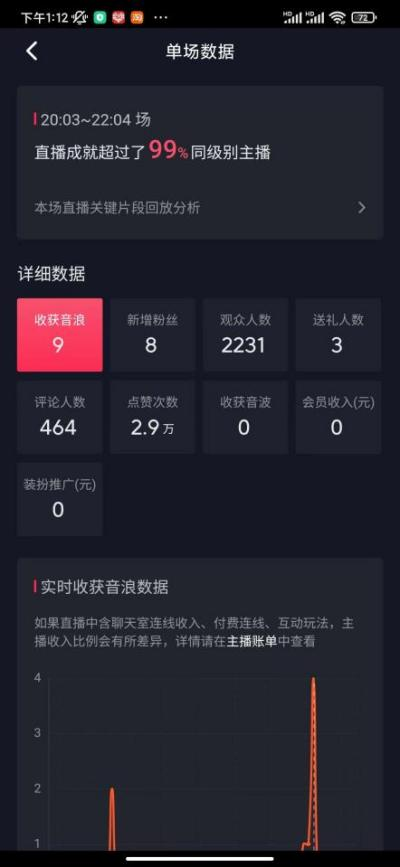 ②直播結(jié)束后,直播數(shù)據(jù)截圖